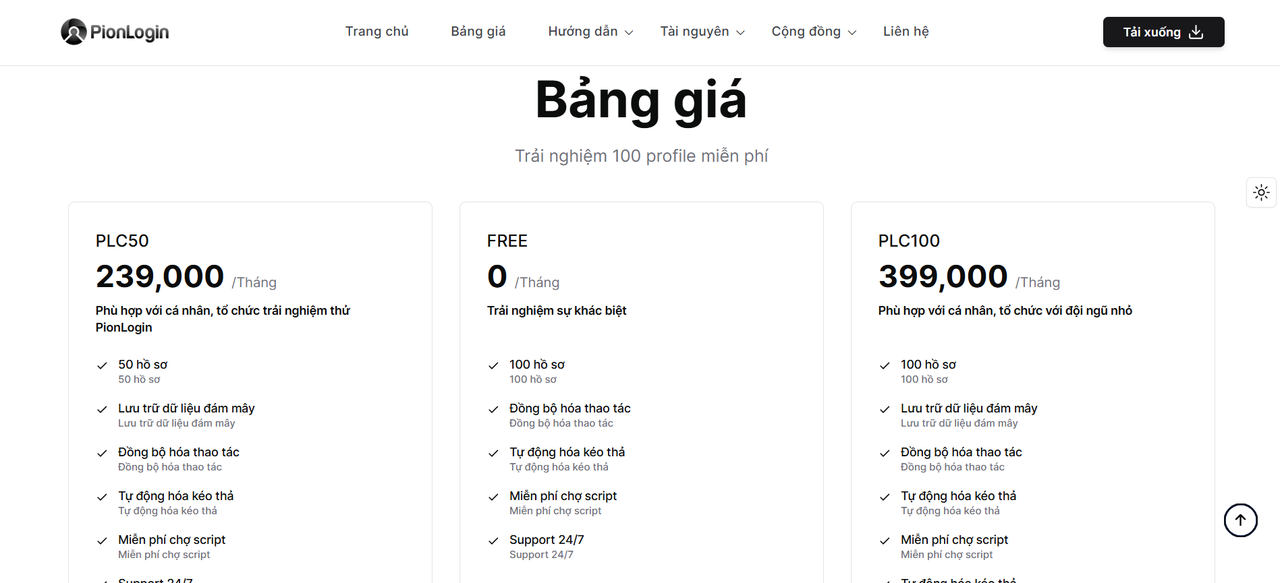 • - Tối ưu chi phí, tối đa giá trị: PionLogin cung cấp miễn phí số lượng lớn profile cùng các tính năng cao cấp (đồng bộ thao tác, proxy, quản lý đội nhóm) mà các nền tảng khác thường yêu cầu trả phí, giúp bạn dễ dàng bắt đầu và mở rộng mà không gặp rào cản về chi phí.