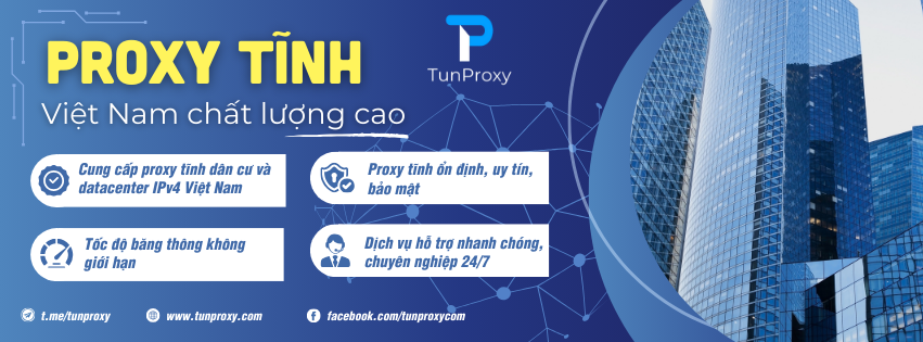 TunProxy là thương hiệu cung cấp proxy tĩnh IPv4 Việt Nam chất lượng cao, gồm proxy datacenter và proxy dân cư, giúp đảm bảo kết nối ổn định, bảo mật tài khoản. Ngoài ra còn có proxy tĩnh datacenter US giúp anh em có nhiều lựa chọn hơn.